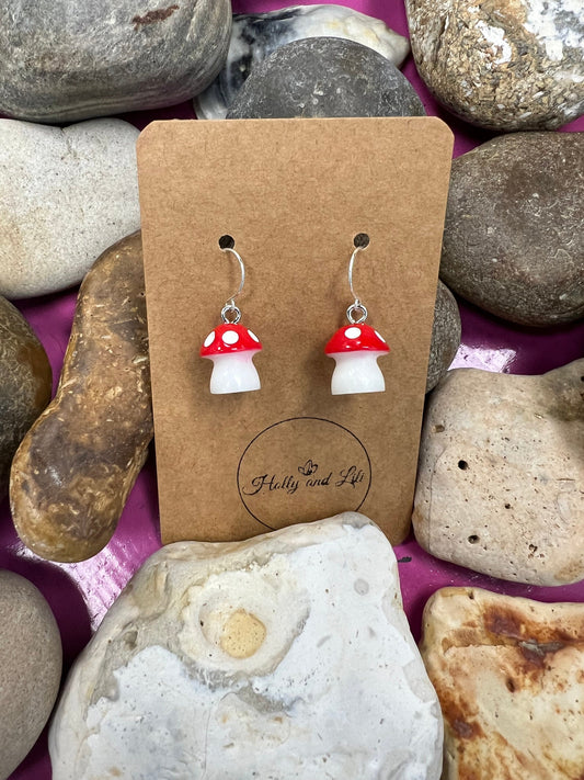 Mushroom 925 Sterling Silver Earrings, Red Shroom Earrings, Toadstool Earring, Mushy Earring, Novelty Mushrooms Gift 925 Fine jewellery