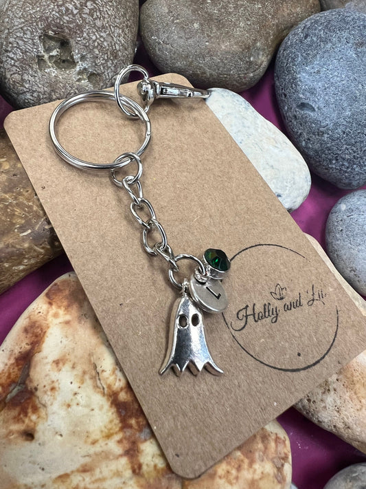 Ghost Personalised Keychain, Goul Keyring Gift, Alphabet Initial, Birthstone Charm, Spooky Personalised Gift, Ghosts Zipper