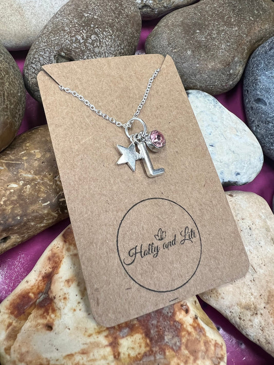 Star Necklace, Stars Personalised Pendant Charm Necklace, Alphabet Initial, Birthstone Charm, First Necklace, Star Gifts
