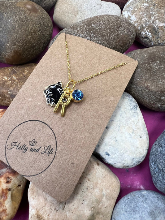 Cat Personalised Pendant Charm Necklace, Cats, Pussy, Kitten, Alphabet Initials, Birthstone Charm, Animal Lover, Remember Them