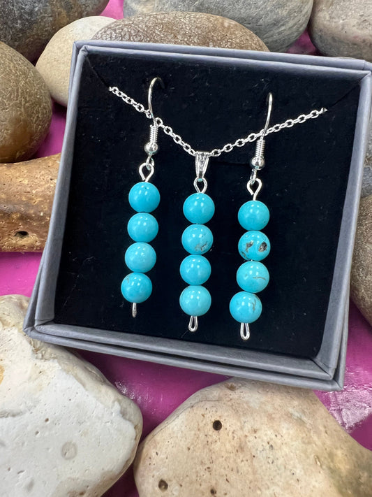 Birthstone Crystal Turquoise Bead Drop And Dangle Earrings, Healing 925 Earrings, Sterling Silver 925, Birthday Jewellery Gift Set, December