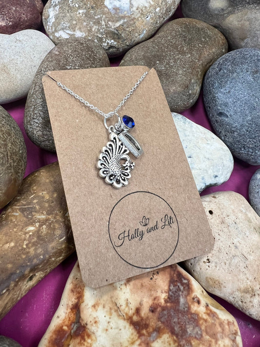Peacock Personalised Pendant Charm Necklace, Alphabet Initials, Birthstone Charm, Birdies Chain, Bird Necklace, Peacocks Gift For Her