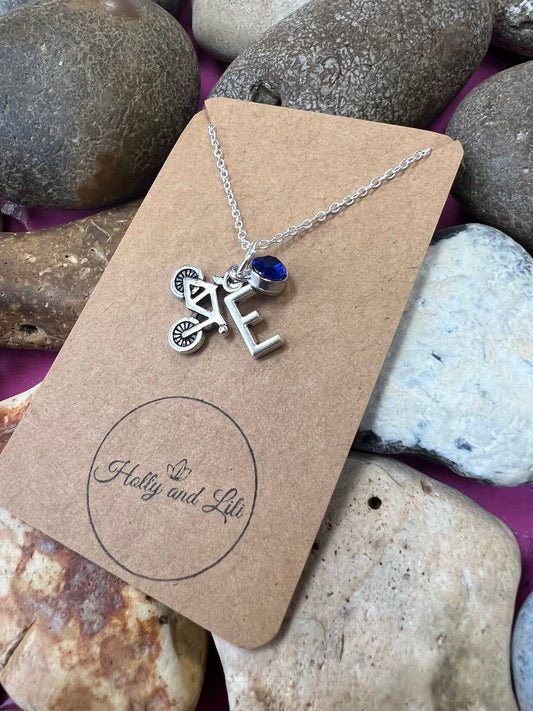 Bike Necklace, Bikes, Cycling, Style Novelty Charm Necklace, Personalised Alphabet Initials, Birthstone Charm, Bicycle Necklace, Gifts