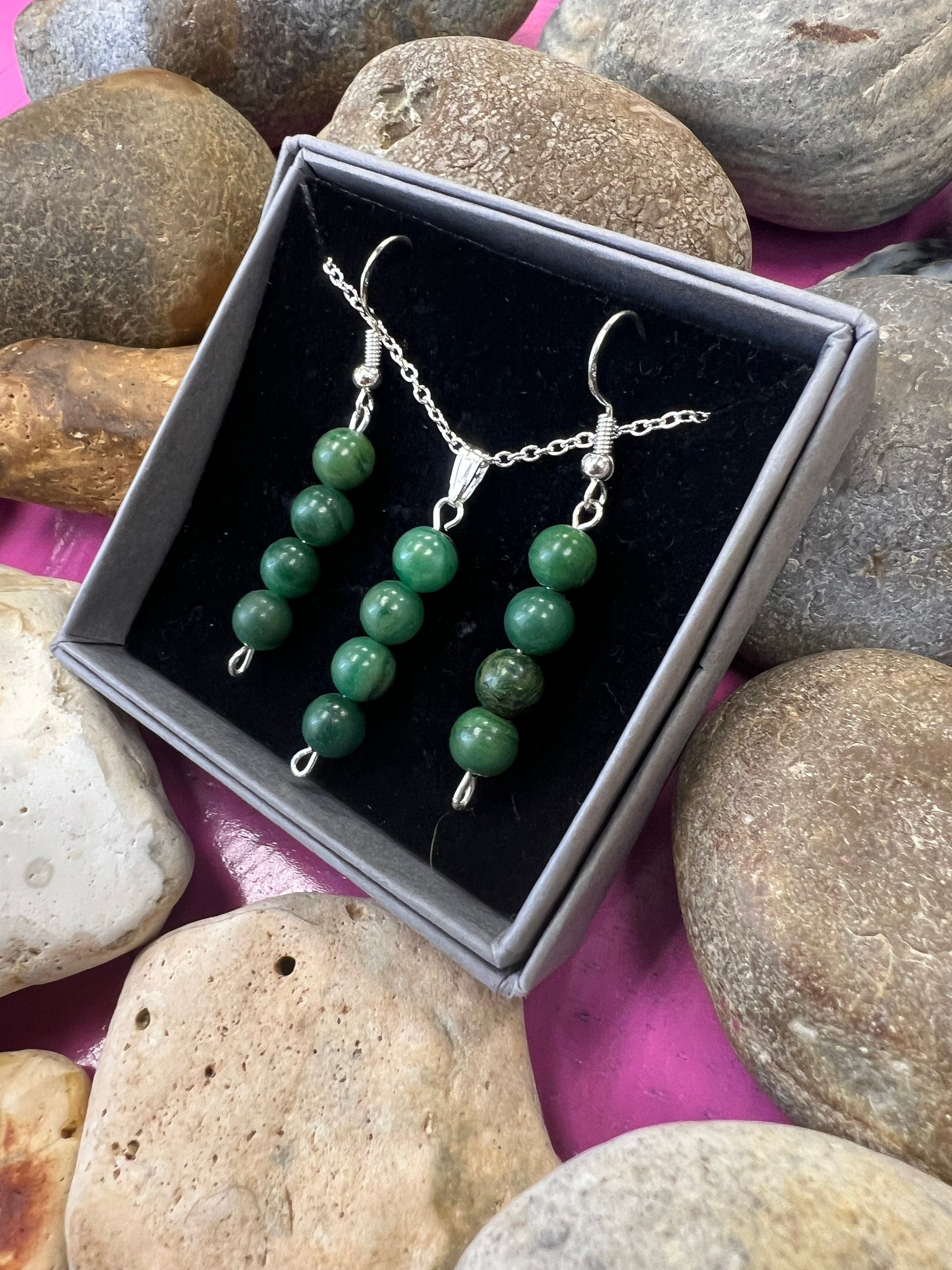 Birthstone Crystal African Jade Bead Drop And Dangle Earrings, Healing 925 Earrings, Sterling Silver 925, Birthday Jewellery May Gift Set