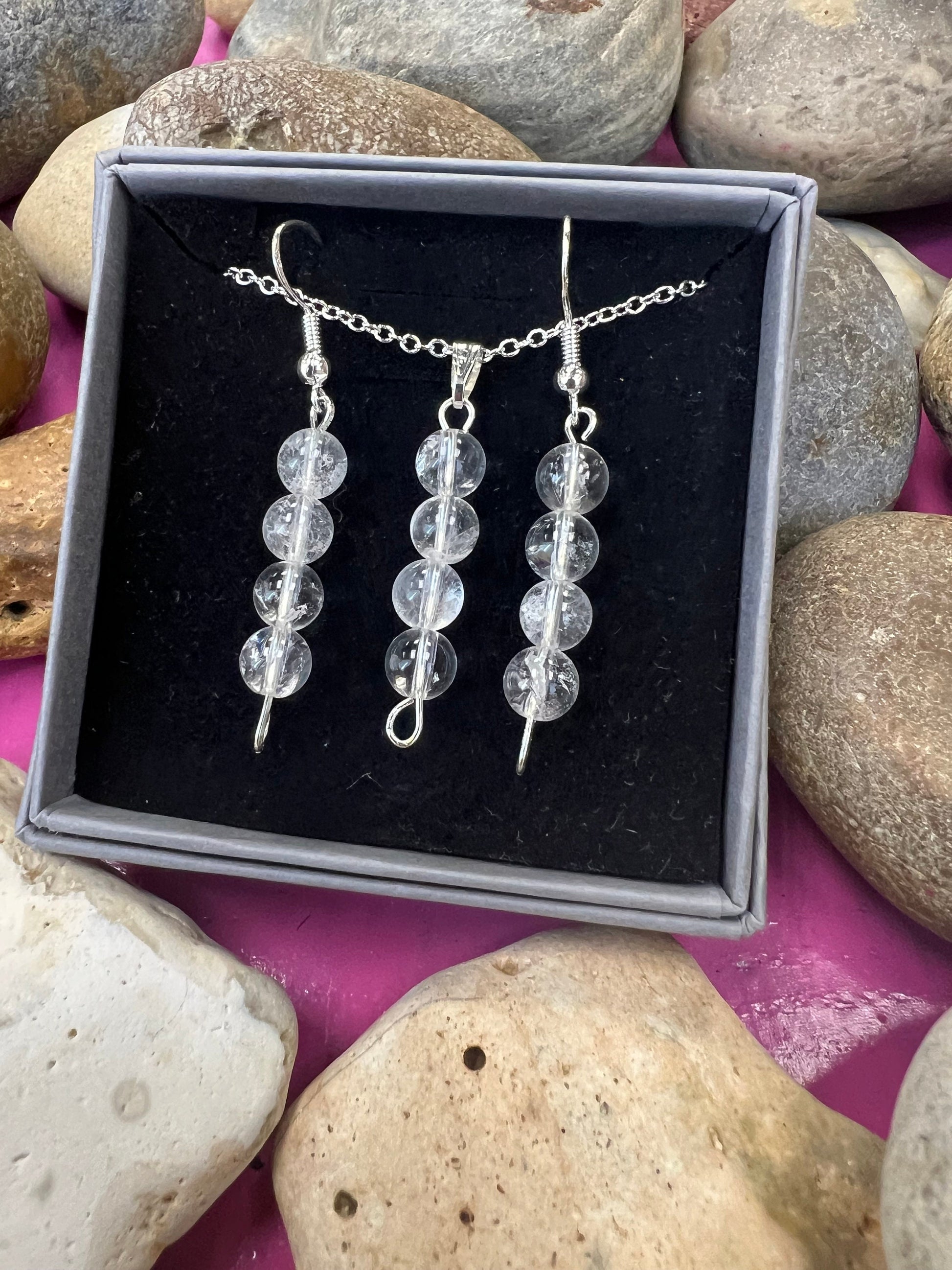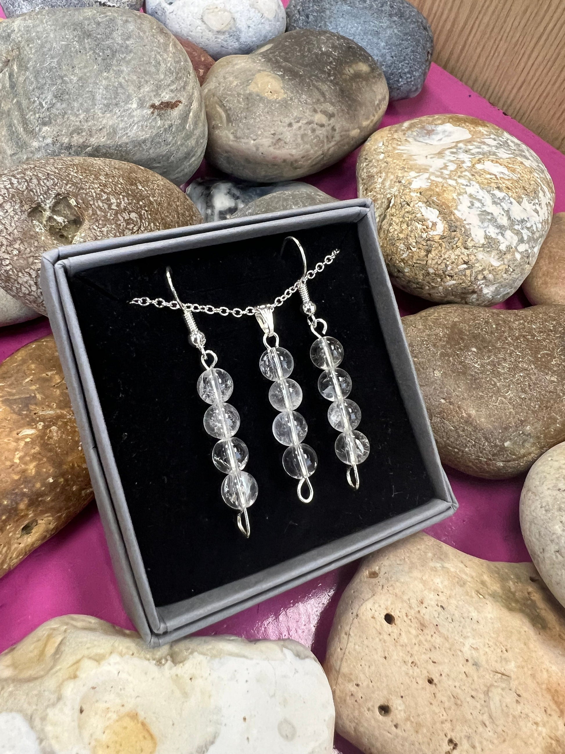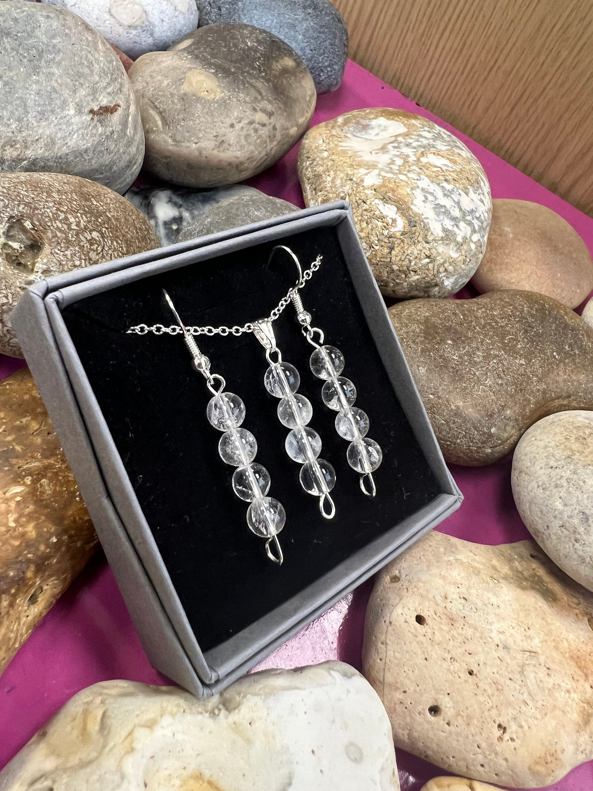 Birthstone Crystal Clear Quartz Bead Drop And Dangle Earrings, Healing 925 Earrings, Sterling Silver 925, Birthday Jewellery Gift Set April