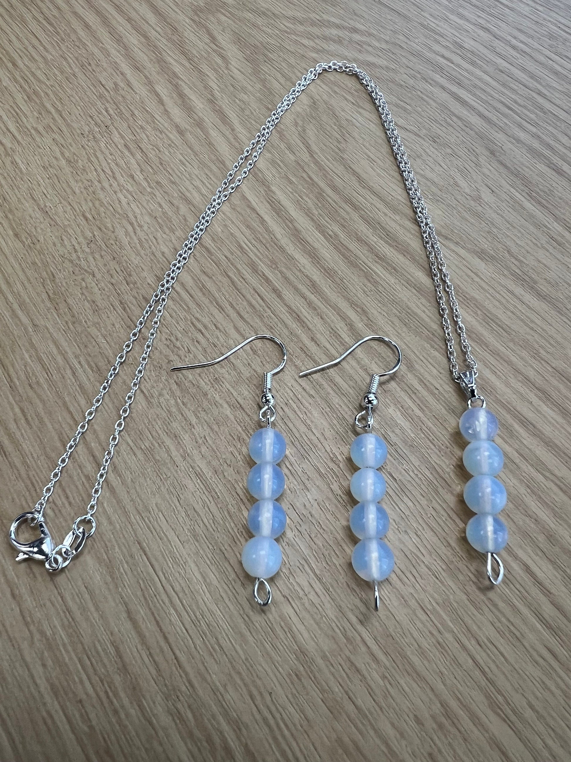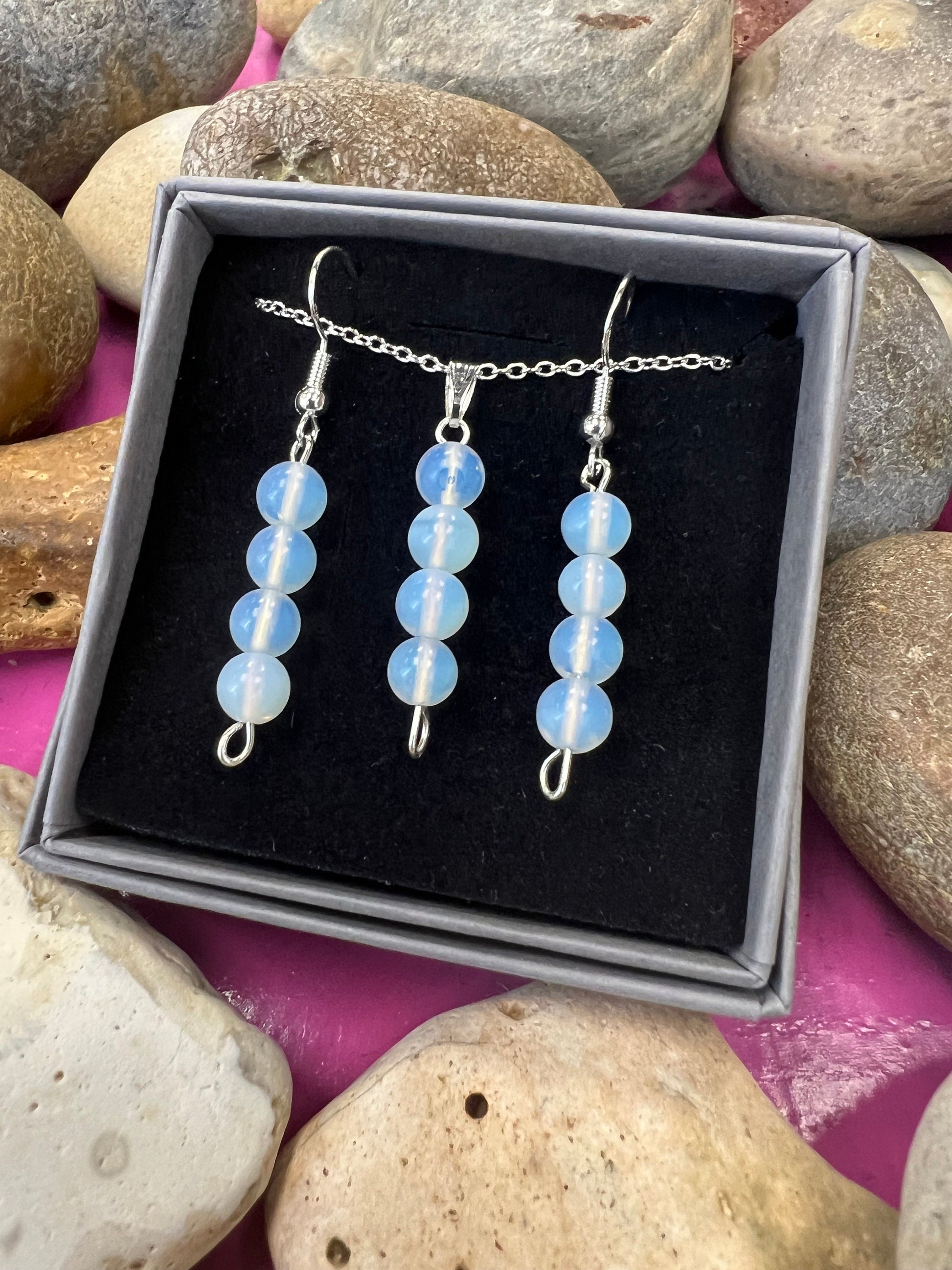Birthstone Crystal Opalite Bead Drop And Dangle Earrings, Healing 925 Earrings, Sterling Silver 925, Birthday Jewellery Gift Set, October