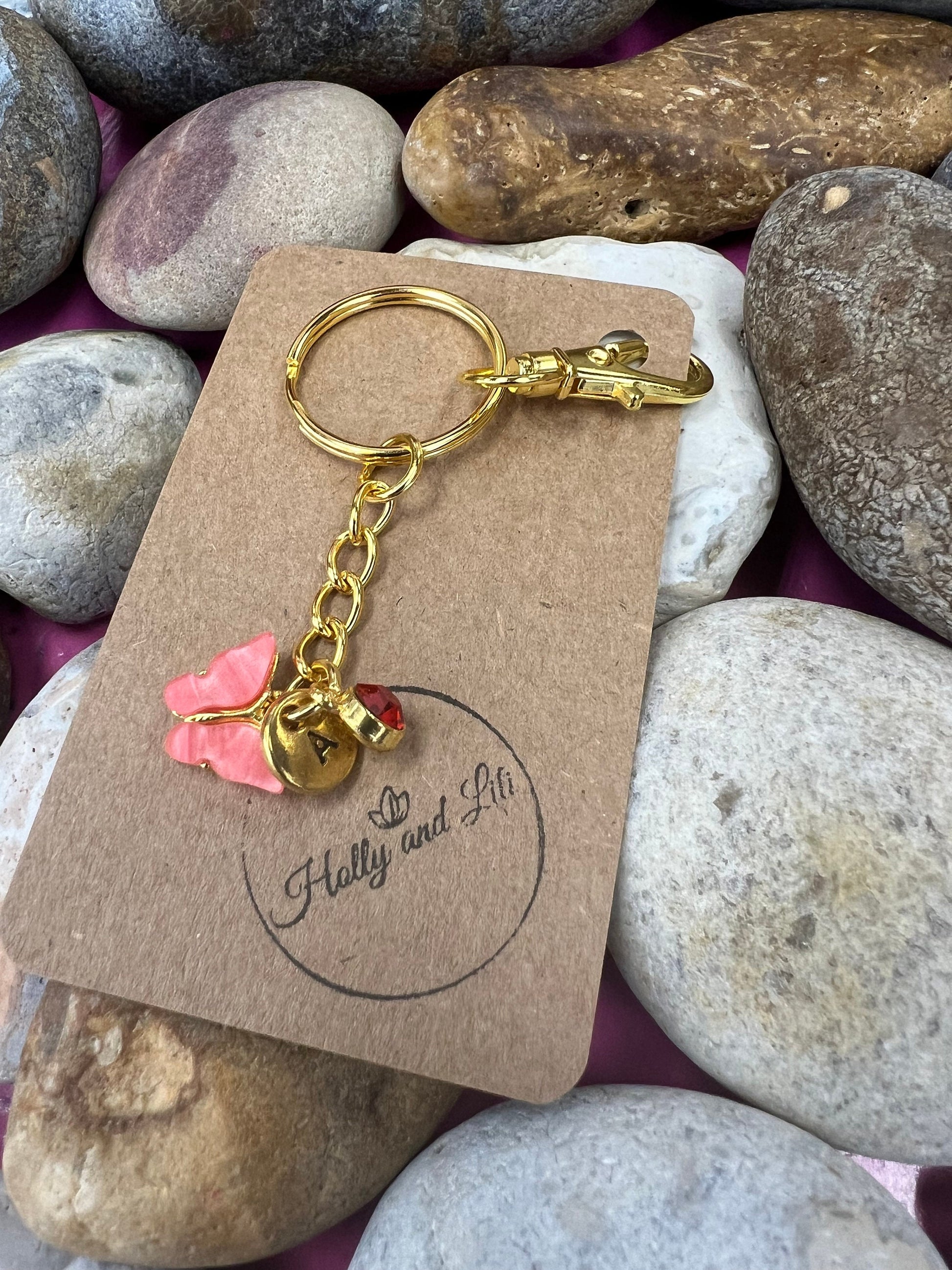 Butterfly Rose Personalised Keychain, Quack Keyring, Alphabetical Initial, Birthstone Charms, Insect Zipper Chains, Novelty, BFF