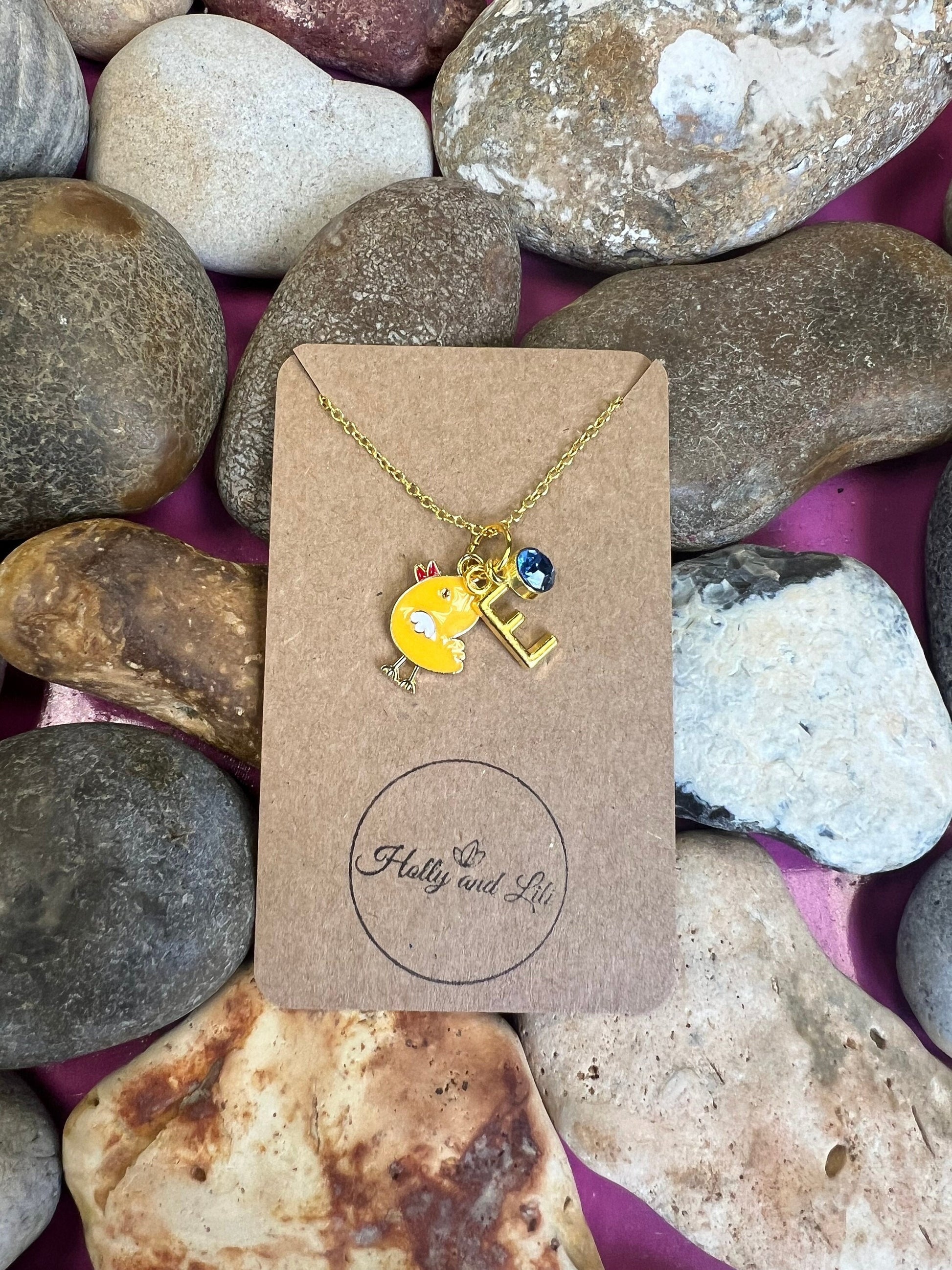 Chicken Personalised Pendant, Chick Necklace, Alphabet Initials, Birthstone Charm, Chickens, Baby Chick , First Necklace, Animal Chain, Cute