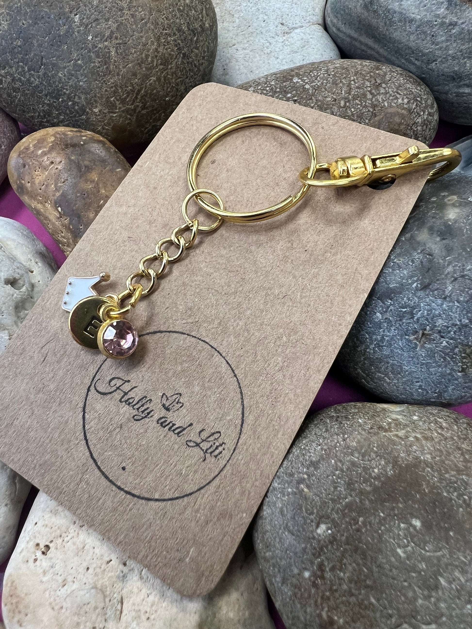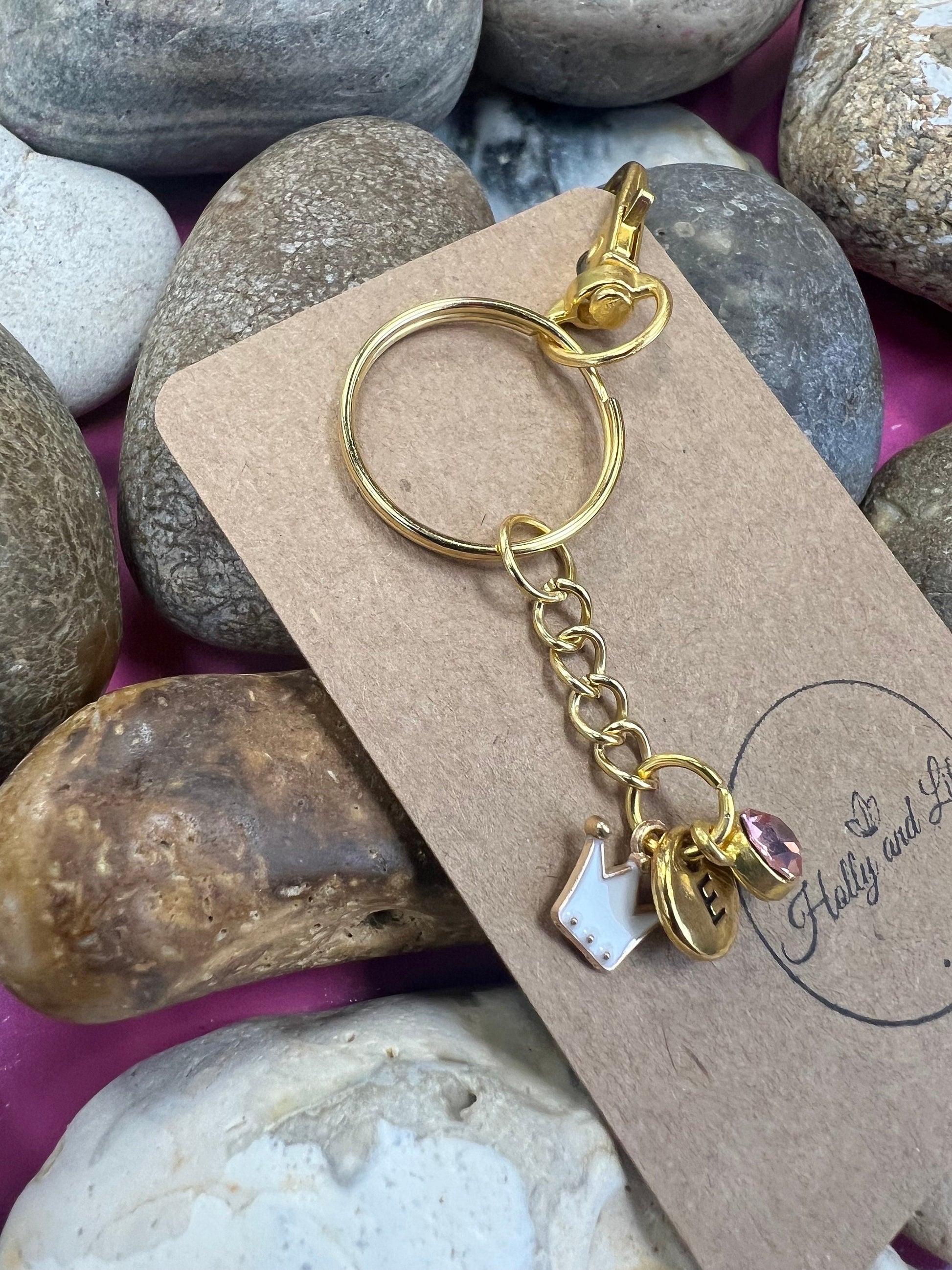 Crown Personalised Keychain, Crown Keyring, Alphabetical Initial, Birthstone Charms, Crowns Zipper Chains, Novelty, BFF, Royal Zipper