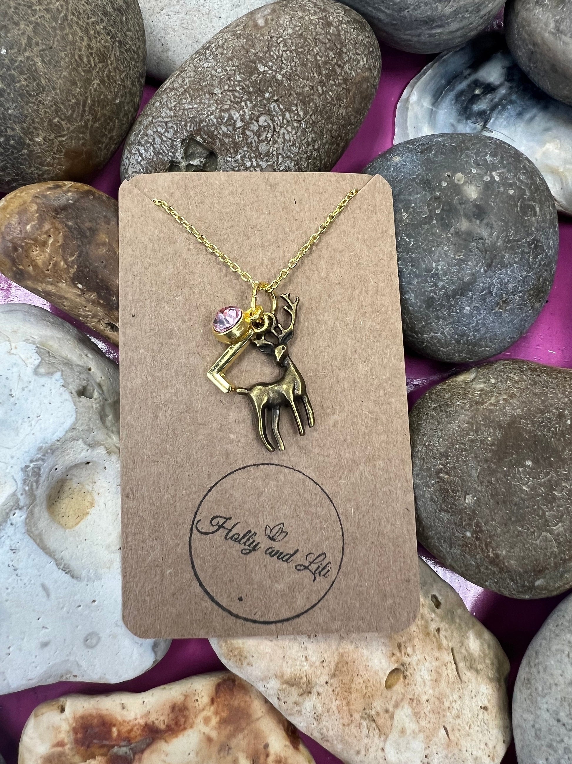 Deer Stag Personalised Pendant Charm Necklace - Personalise Your Alphabet Initials & Birthstone Charm From Holly And Lili