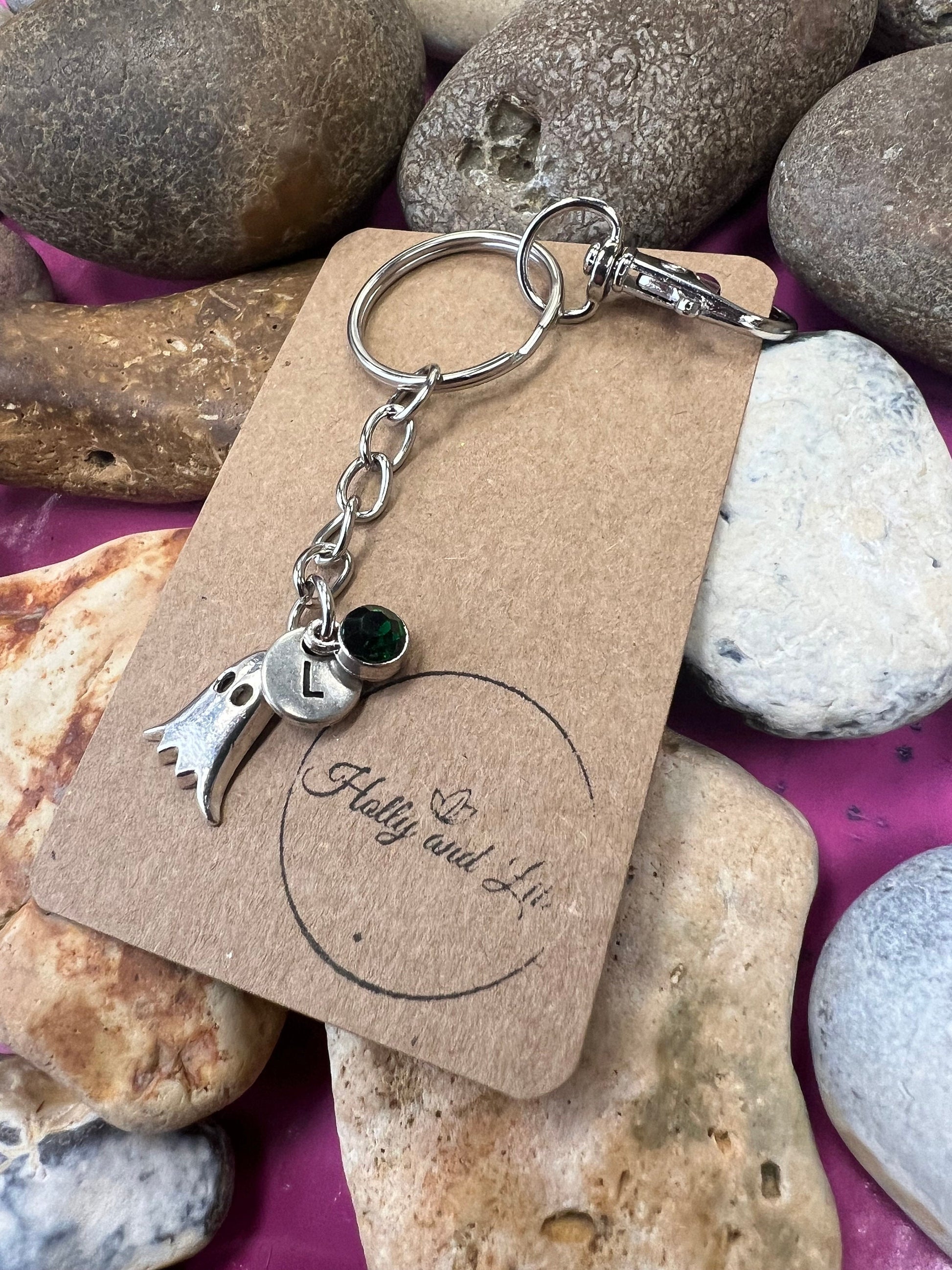 Ghost Personalised Keychain, Goul Keyring Gift, Alphabet Initial, Birthstone Charm, Spooky Personalised Gift, Ghosts Zipper