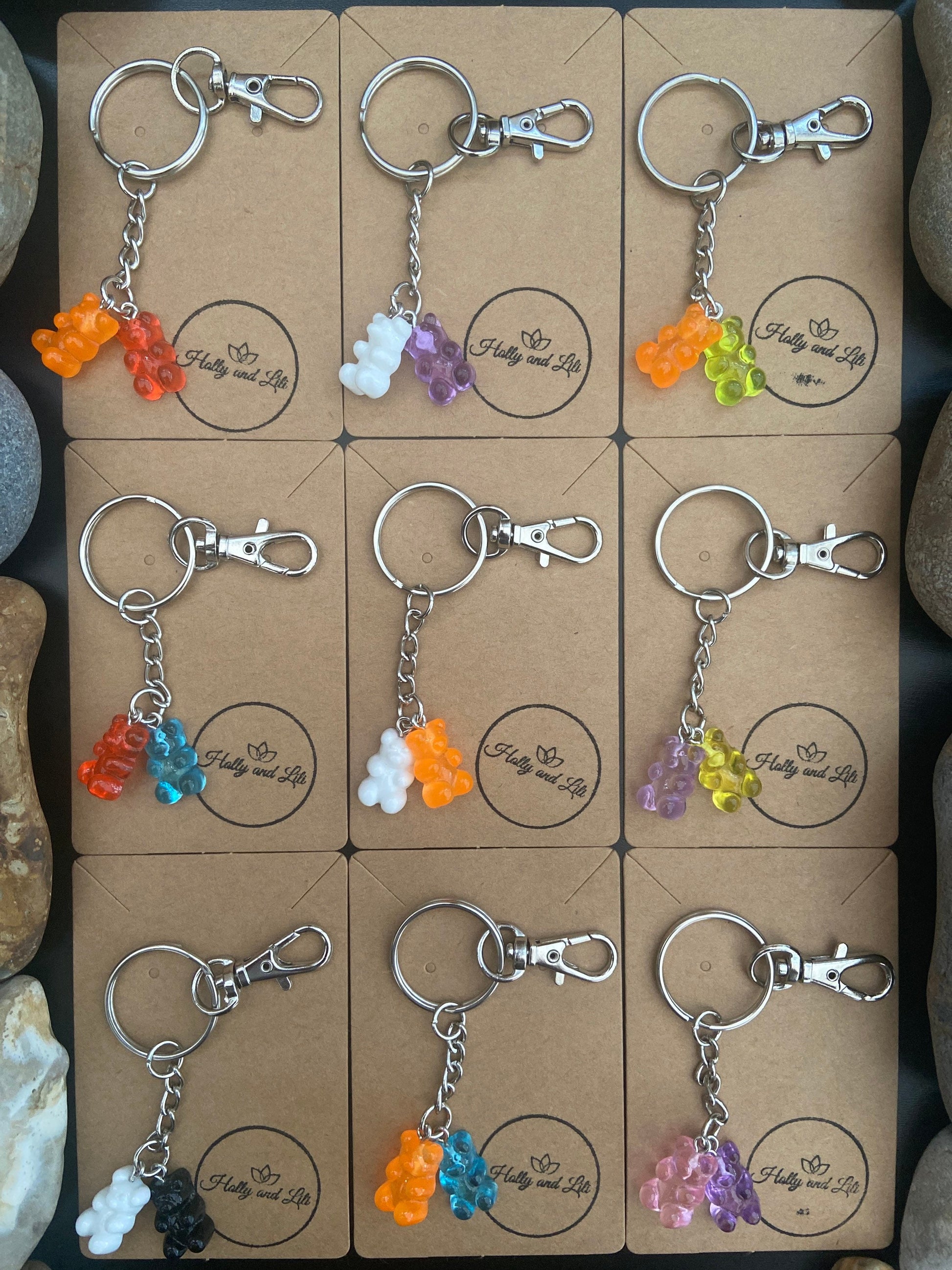 Gummy Bear Style Keyring, Teddy Bear Double Charm, Personalsed Gummy Keychain, Many Colours, Novelty Zipper Chain, Cute Bear Gifts for Bff