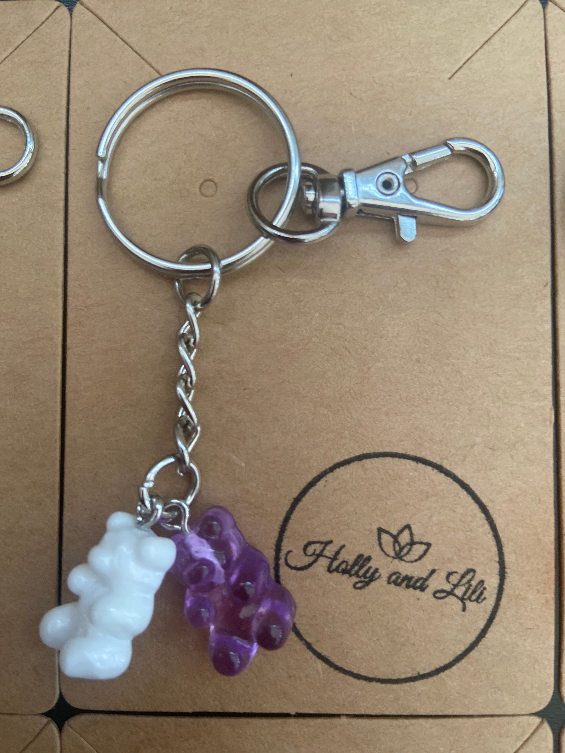 Gummy Bear Double Pendant Charm - Comes On A Steel Keychain With Detachable Lobster hook clasp .
