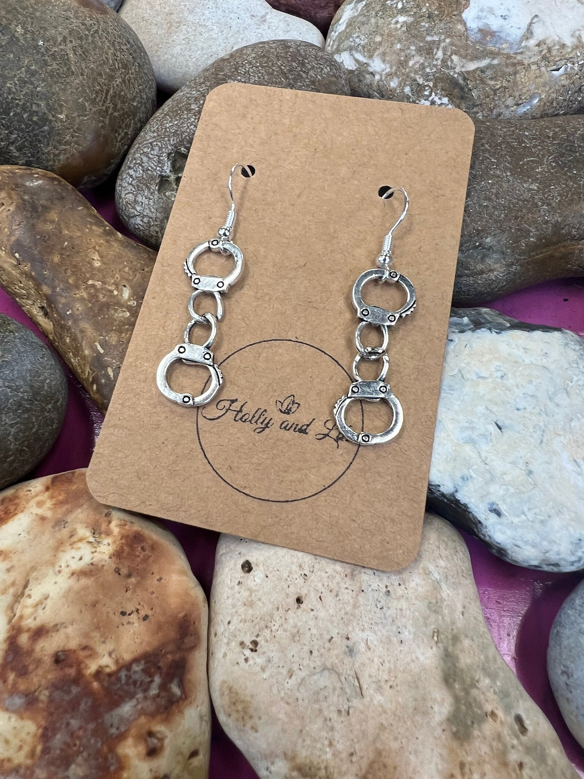 Handcuff Earrings, Nicked Earrings, Hand Cuff Personalised Earrings, Tied Up Hoops, Handcuffs Earring Hooks, Novelty Earrings, Gift For BFF