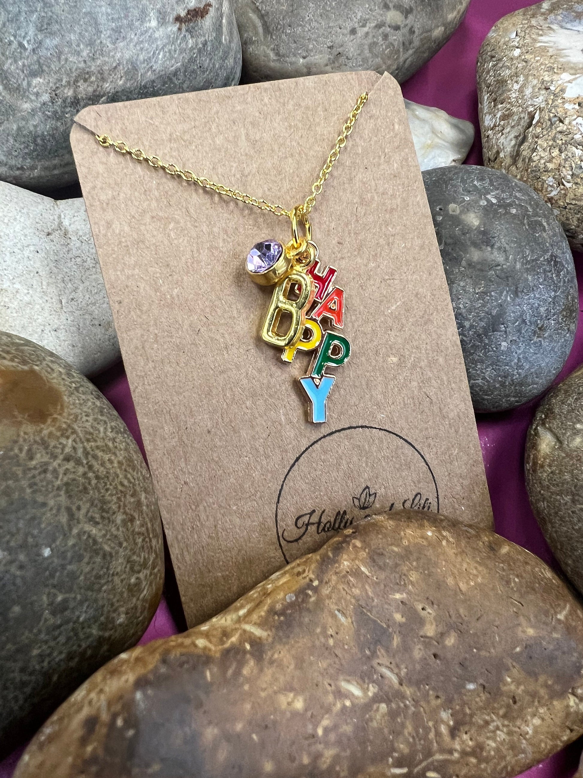 Happy Personalised Pendant Charm Necklace, Alphabet Initials, Birthstone Charm, Happy Gift, Happy Personalised, Friendship Gifts