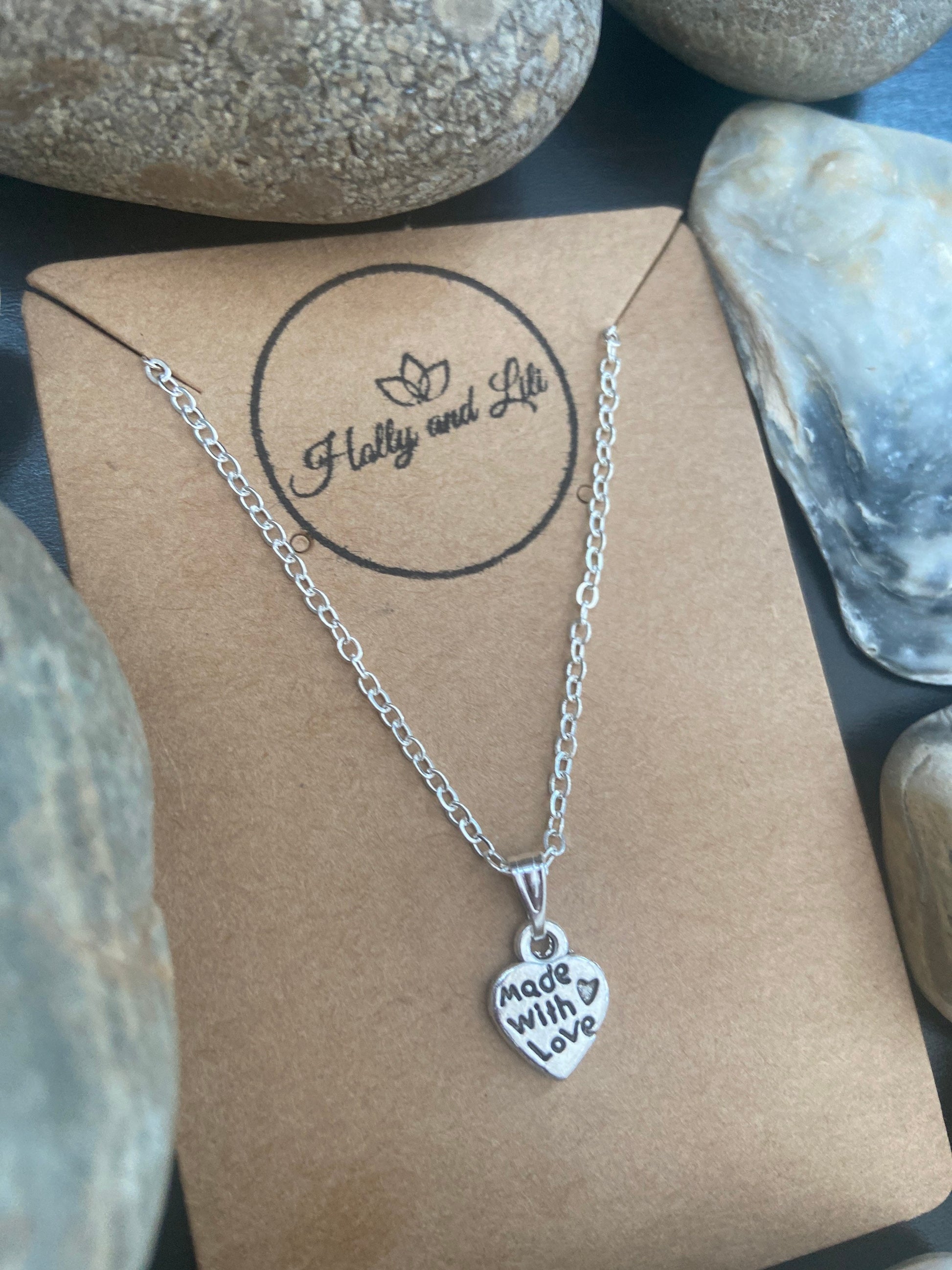 Heart Made With Love Pendant Necklace, Heart Shaped, Love , Show Your Love, Dainty Silver Heart, First Necklace, Cute Gift For Daughter Mum