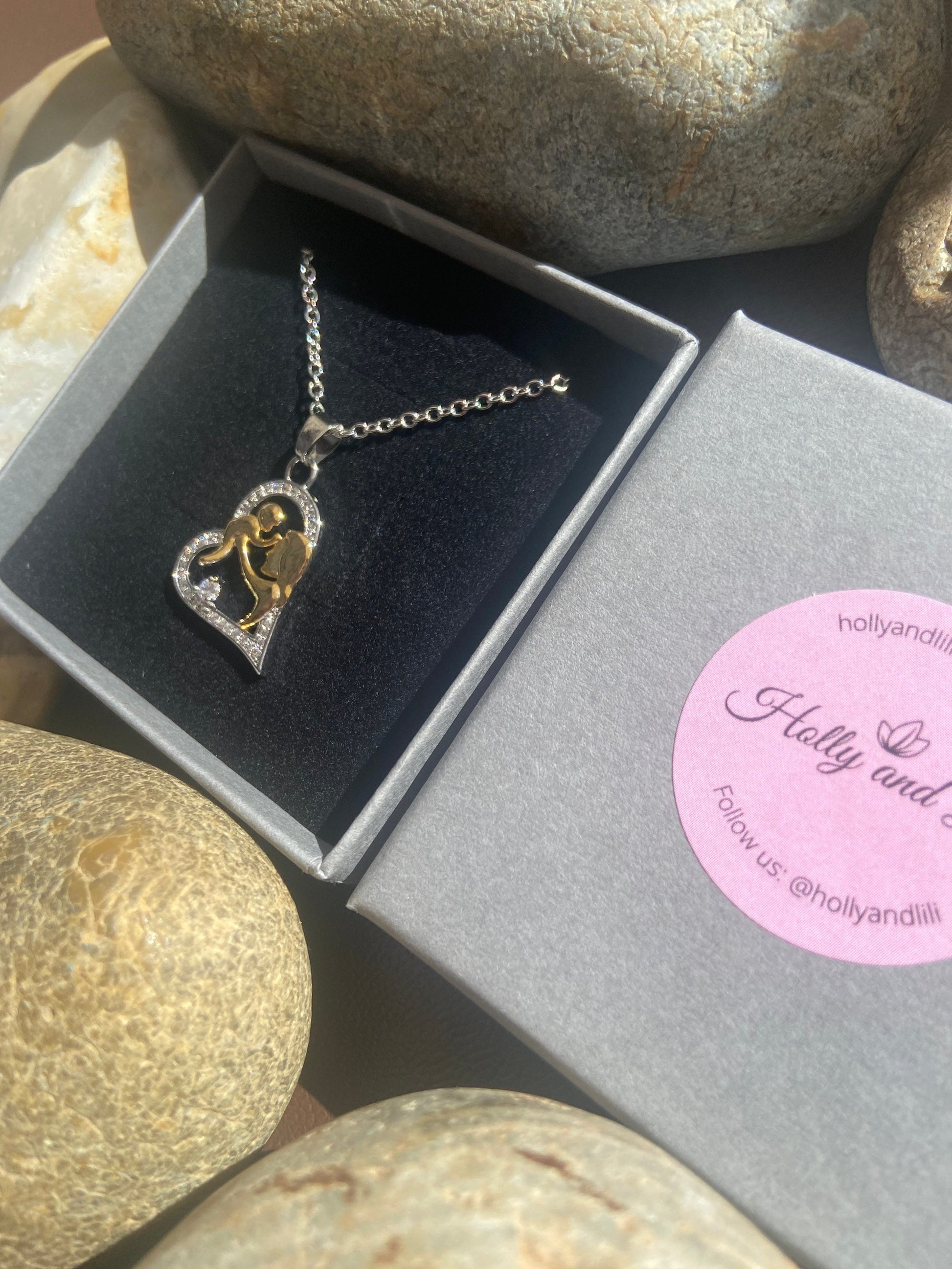 Heart Two tone Gold and Silver Mother And Baby Heart Necklace - Simply Beautiful.