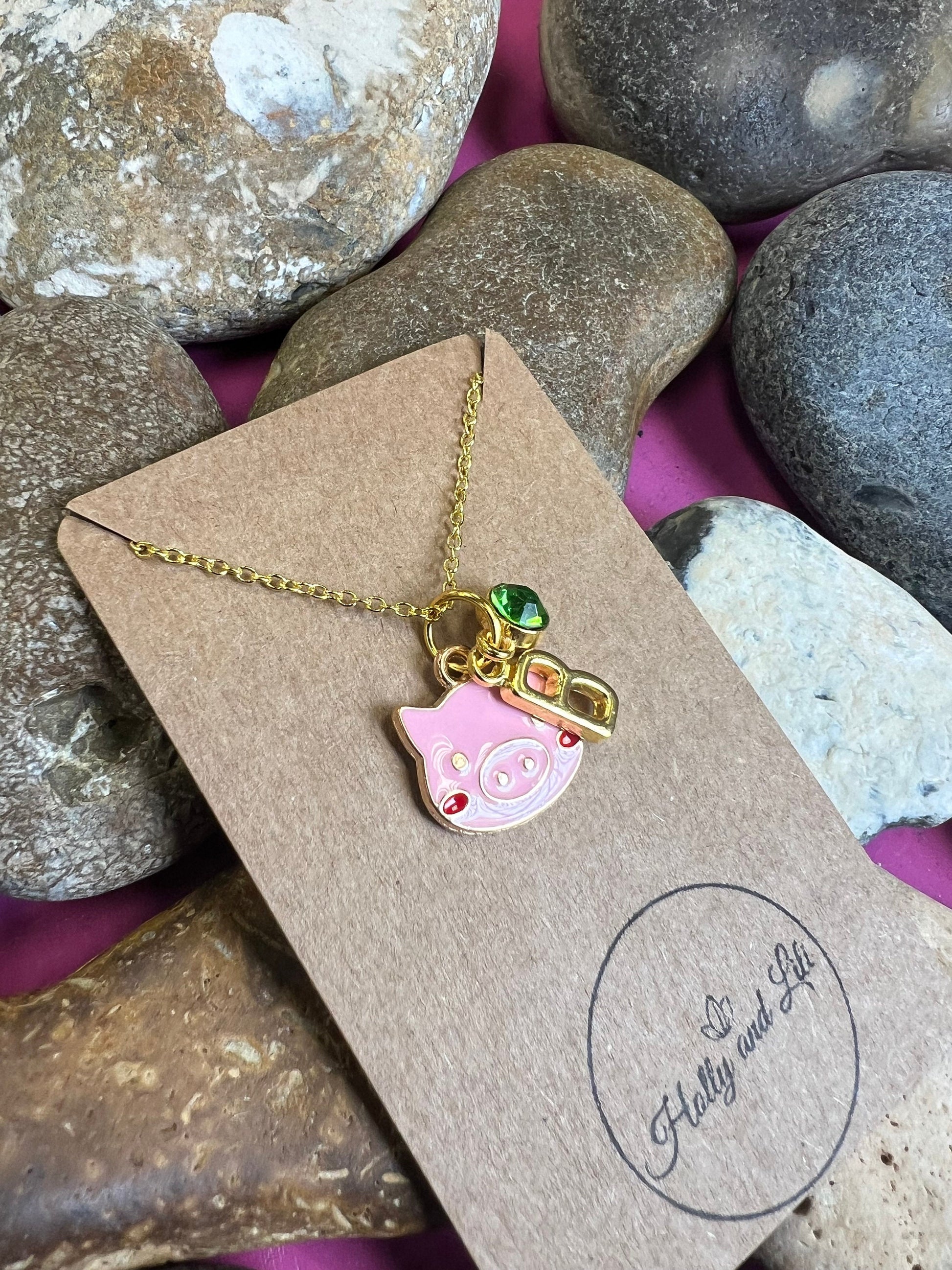 Pig Face Personalised Pendant Charm Necklace - Personalise Your Alphabet Initials & Birthstone Charm From Holly And Lili