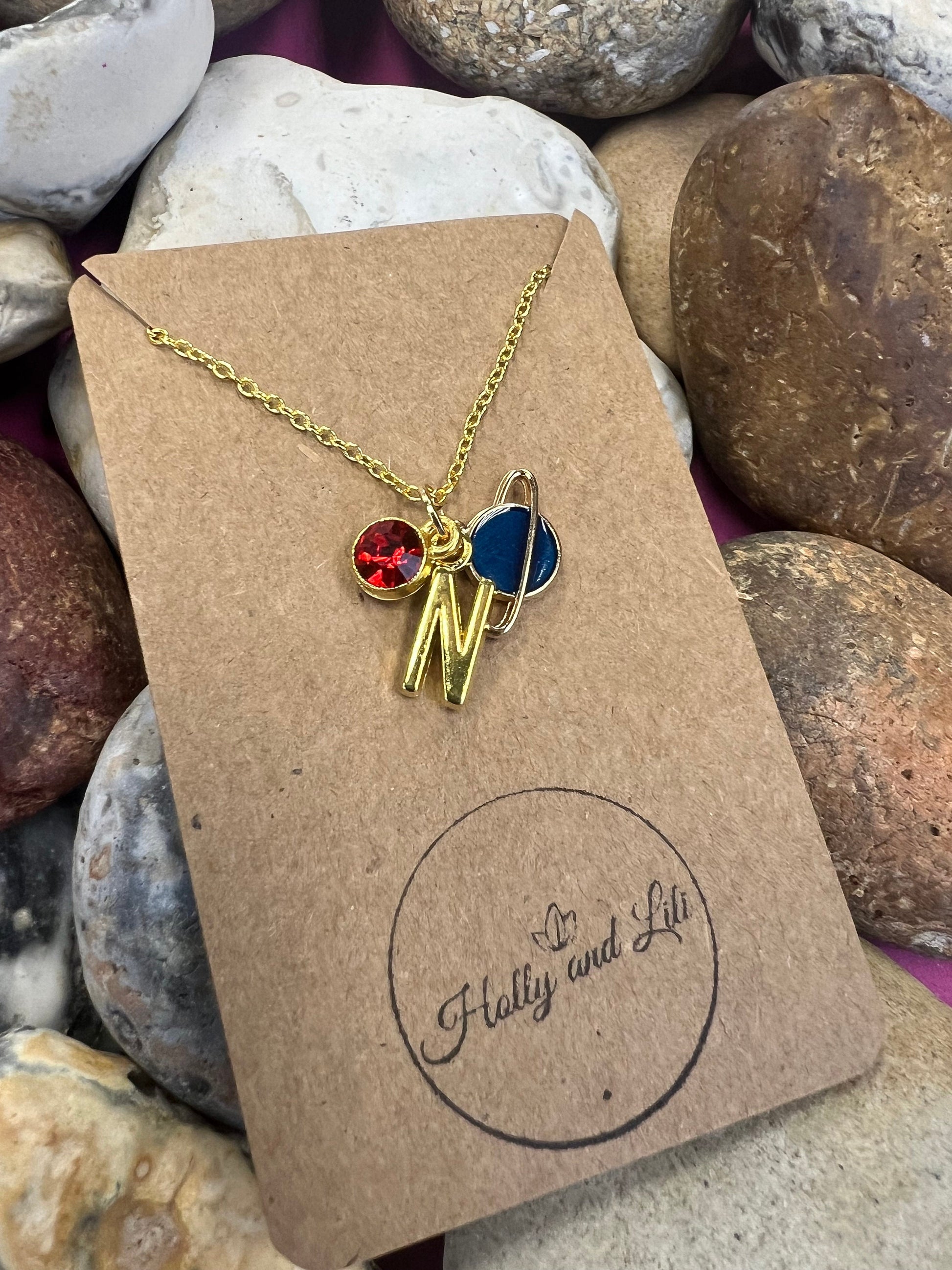Blue Planet Style Personalised planetary Pendant Charm Gold Necklace - Personalise Your Alphabet Initials & Birthstone Charm From Holly And Lili