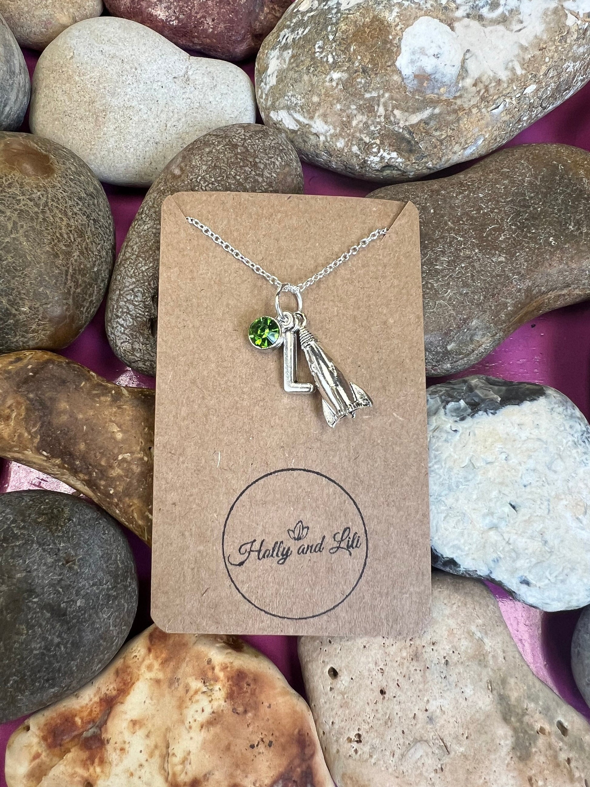 Rocket Necklace, Rockets, Spaceship, Style Novelty Charm Necklace, Personalised Alphabet Initials, Birthstone Charm, First Necklace, Gifts